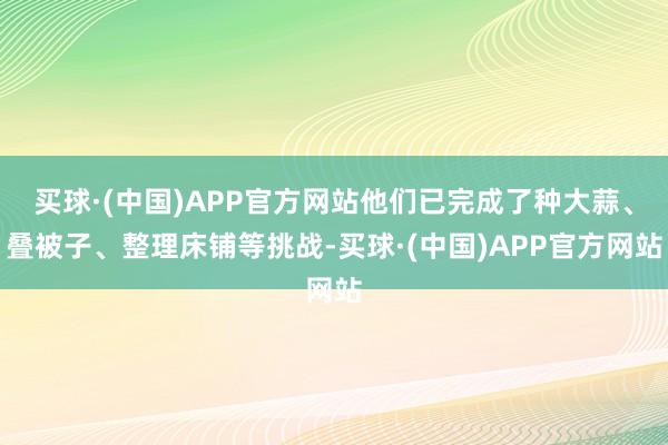 MORE >>买球·(中国)APP官方网站他们已完成了种大蒜、叠被子、整理床铺等挑战-买球·(中国)APP官方网站
