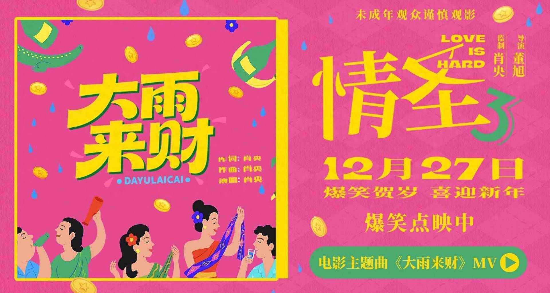 贺岁档爆笑笑剧《情圣3》当天发布主题曲《大雨来财》MV,歌曲由监制兼领衔主演肖央切身作词作曲,充满喜感的魔性旋律搭配影片笑点十足的高能名状况,将影片中放纵狂欢的讲理氛围拉满,更有未曝光的搞笑彩蛋等你来解锁!电影呈文了田绍基(肖央 饰)与邵好意思珍(谭卓 饰)的婚配际遇信任危急,为调停心扉,两东谈主使出多样搞笑招式,好友甘火旺(乔杉 饰)也加入“助攻”,激发一连串令东谈主啼笑都非的笑料。影片由肖央监制、董旭执导,正在爆笑点映中,将于12月27日认真上映。当作年末必看的解压爆笑笑剧,《情圣3》玄机编织笑点与泛泛生存,为不雅众带来欢欣满溢的98分钟,让你在影院笑到顿脚,一扫年终困窘!