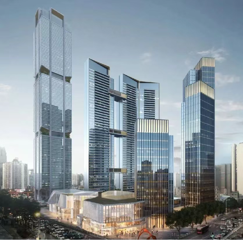说明规划,形式将建1栋3-4层的营业中心,3栋23层-49层的办公楼,3栋47层高的住宅楼,1所幼儿园,以及和地铁合建的地下营业广场。