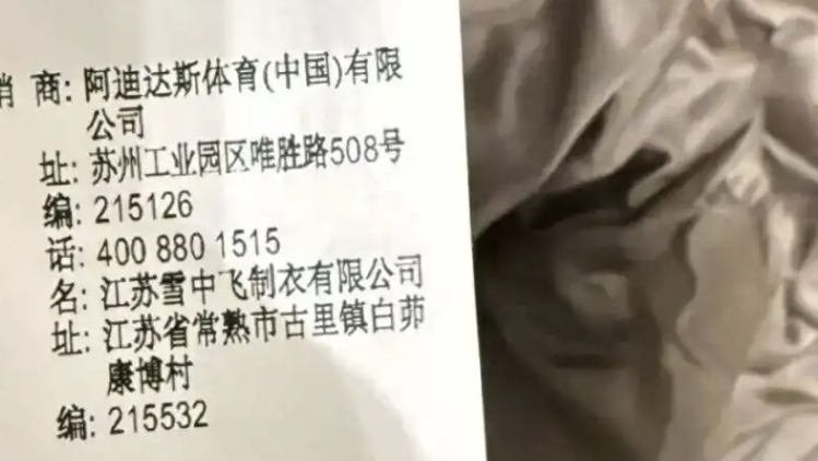 阿迪达斯羽绒服被指由雪中飞、波司登代工