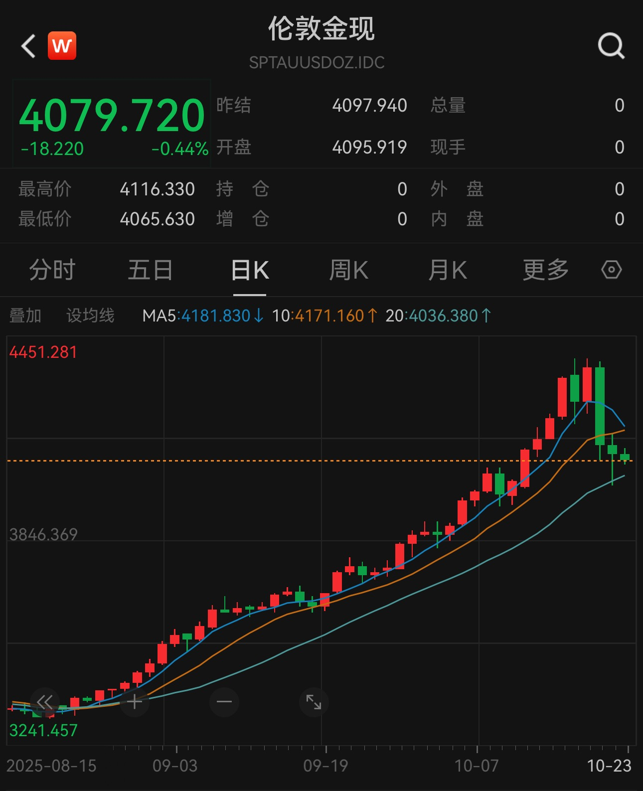 中新经纬10月23日电 (董文博)金价仍不才探。10月23日早间买球下单平台,伦敦金盘中失守4080好意思元/盎司。