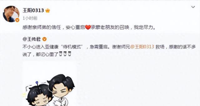 是以在12月17日,王传君在应答平台上发文称我方的体魄仍是插足“亚健康待机样式”,因此无法再完成该剧组的职责,是以请来了我方的师兄王阳来救场,而他就要退出《沉山河图》剧组了。