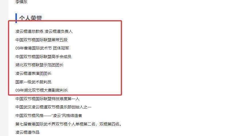 除此以外,李镇东还得回了多项寰球双节棍方面的冠军名称,另外,他依然国度一级技击裁判。