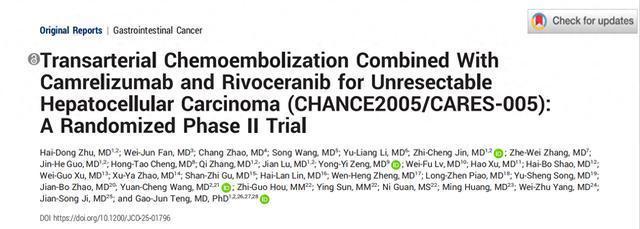 2月25日足球投注app,由中国科学院院士、东南大学医学与人命科学部主任、东南大学附庸中大病院介入诊疗中心主任滕皋军西宾牵头,麇集寰宇22家中心共同开展的“TACE麇集卡瑞利珠单抗和阿帕替尼对比肝动脉化疗栓塞术(TACE)调整不行切除肝细胞癌(HCC)的寰宇多中心、迅速、平行对照筹办遵循(CHANCE2005/CARES-005)”,在好意思国临床肿瘤学会旗舰会刊《临床肿瘤学杂志(Journal of Clinical Oncology)》(肿瘤学鸿沟顶刊,IF:43.4)在线发表。这亦然首个由国内介入众人基于民族企业原研药物,自主联想并完成的多中心、最高等别循证医学凭据的临床筹办。该论文的终末通信作家和第一作家均来自东南大学附庸中大病院。