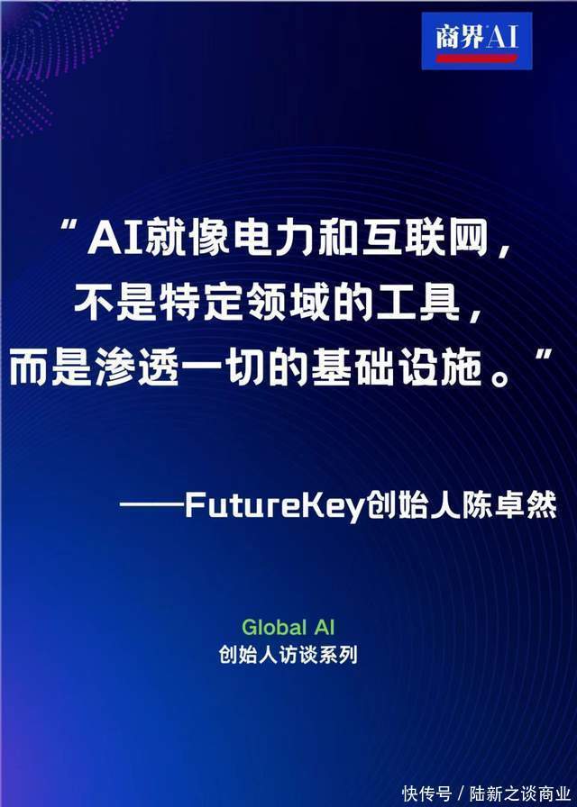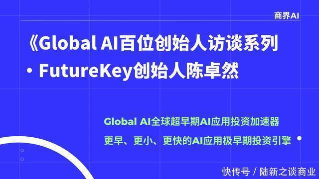 “一东谈主独角兽时间开启”——2025年6月,“Global AI民众超早期AI诈欺投资加快器”平台发布,它颠覆传统孵化时势,定位为“比硅谷YC更早、更小、更快”的AI诈欺极早期投资引擎。动作Global AI的发起方之一,咱们《商界AI》在梳理模样名单时,防护到FutureKey独创东谈主陈卓然。
