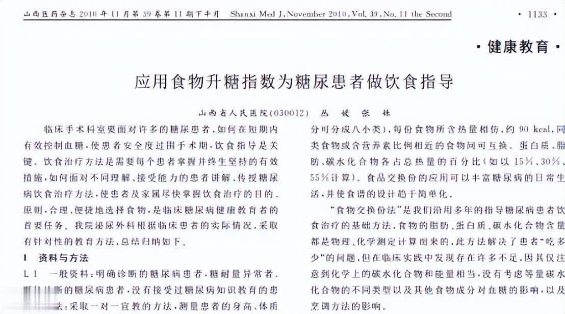 参考汉典[1]丛媛.运用食物升糖指数为糖尿患者作念饮食教学买球下单平台, 山西医药杂志(下半月刊) ,2010-11-25
